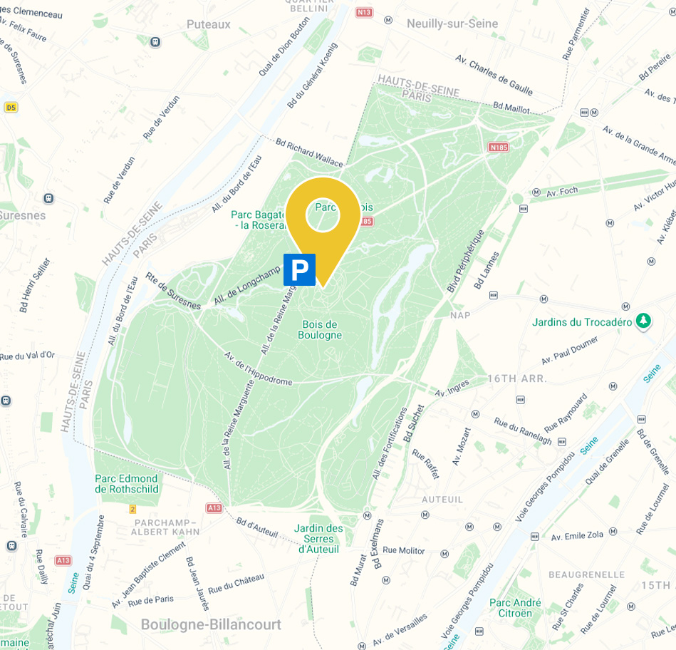 Un parking payant est à votre disposition à l’entrée du Jardin Shakespeare devant le restaurant du Pré Catelan.